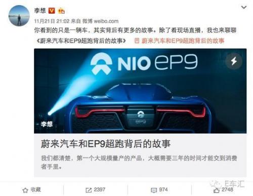 但蔚来的“成功”似乎来得很容易,在经过两年的默默无闻后,于伦敦举办一场EP9上市的发布会便一举成名、家喻户晓!这条新闻虽已发酵一周,但类似“百公里加速小于3秒”、“全球最快电动汽车”、“蔚来EP9全球首发”、“4台高性能电机”、“4个独立变速箱”等评价仍不绝于耳。
