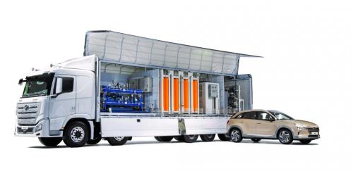 现代汽车集团移动型加氢站(H Moving Station)一次可为多达25辆NEXO的氢燃料电池系统进行充氢