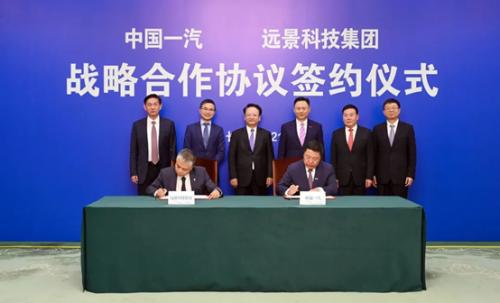 9月28日,远景科技集团与中国第一汽车集团签署战略合作协议,将围绕绿色出行、绿色能源、高端动力电池、零碳产业园、可再生能源系统等多个领域开展深入合作,秉承双方在交通、能源、数字化等领域的技术优势,推动电动交通网络与新能源网络融合,打造绿色汽车产业生态,为中国和全球的零碳转型做出贡献。吉林省委书记景俊海会见张雷并见证了战略合作签署。