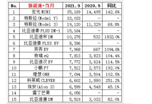与此同时,比亚迪此前积压的产能也在9月得到释放。在乘联会发布的9月新能源销量排行榜中,前六名里比亚迪占据了3个席位。一个月前,仅有比亚迪秦PLUS DM-i一款车型跻身前六。