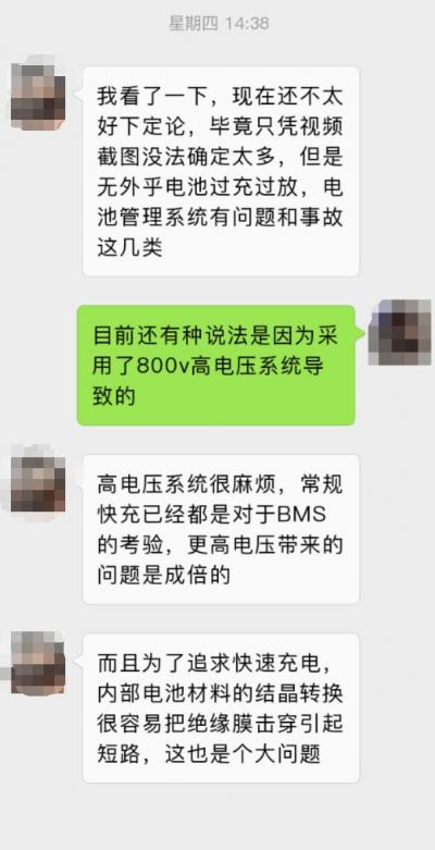 相关人士提出,Taycan采用了800v的高压系统,这就对于电池管理系统提出了更高的要求,常规的400v电压系统已经是对电池管理系统的一个考验,而且保时捷采用的快充系统也对电池组的压力急剧增大。快充快放引起的锂电池结晶快速析出很容易导致短路,从而引起爆炸起火。