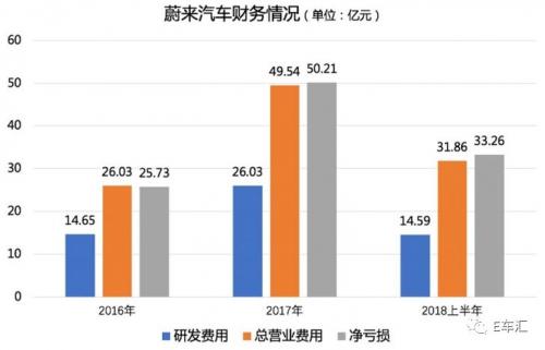 实际上,蔚来这家花钱如同流水的创业公司,在过去短短的两年半的时间里,亏掉了109亿人民币(2016年25.733亿,2017年50.212亿,2018年上半年33.255亿)。