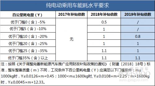 2018年,相关政策开始对纯电动乘用车百公里耗电量(Y)表现较好的产品给予额外补贴。今年该补贴仍在,不过对能耗标准有了进一步的提升。