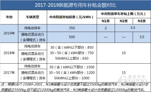 此次新能源专用车的单车补贴上限引入了专用车的载重类别,分别是N1、N2、N3。