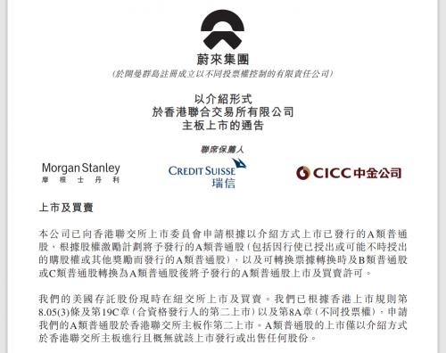 在港交所文件中,蔚来表示,其已作出促进转移至香港以及将美国存托股份转换为A类普通股的安排,其中包括选定摩根士丹利香港有限公司及中国国际金融香港证券有限公司为指定交易商及替代指定交易商。