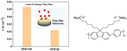 令人惊讶的是,结果表明,薄膜样品中的氢氧离子导电率,可与厚膜样品的电导率相媲美。这与以往质子导电聚合物的报道结果似乎有所不同。