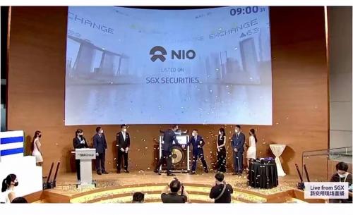 5月20日,蔚来汽车在新加坡交易所敲钟上市,至此,蔚来成为了全球首个完成美国、中国香港、新加坡三地上市的中国企业。