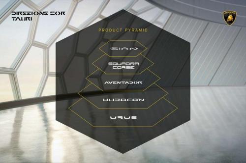 1.内燃机发动机的庆祝(2021年至2022年):通过推出相应车型,向公司近年来获得的持续成功致敬。在过去15年里,兰博基尼实现了销量的稳定增长和营业额的七倍提升,确立了自己在制造超级跑车方面的卓越中心地位。独特的设计、以巨大研发投资为后盾的最高水平的技术创新,以及最高品质和工艺水准是兰博基尼产品金字塔的基石。产品金字塔包括:从造就当下成功的基础——超级SUV Urus,到金字塔顶端——作为科技和设计杰作的特别版限量车型系列。近期推出的特别版限量车型兰博基尼Sián拉开了电动化进程的序幕——这是第一款采用混合动力技术的兰博基尼车型。这个阶段的特点是搭载内燃机发动机车型的继续发展,并将始终秉持兰博基尼独一无二的前瞻视野。两款搭载V12发动机的全新车型将在2021年公布。