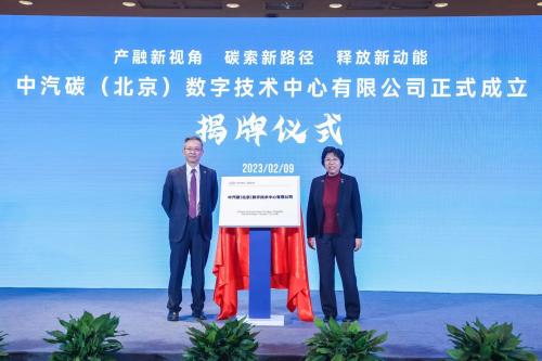 中汽中心董事长安铁成、总经理陆梅为中汽碳数字技术中心公司成立揭牌