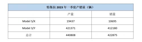 与此同时,产销量方面,特斯拉一季度总汽车产量为44.08万辆,其中Model S/X产量为1.94万辆,Model 3/Y产量为42.14万辆;而一季度总交付量为42.29万辆,其中Model S/X交付量为1.07万辆,Model 3/Y交付量为41.22万辆。