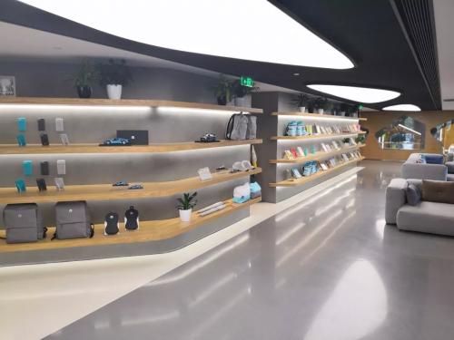 这座用户体验中心被分为了上下两层,从蔚来汽车巨大LOGO下的玻璃门进入中心后,首款量产SUV车型ES8、电动限量超跑EP9分列两旁,深入后还会发现去掉动力总成的Formula E冠军赛车以及在APP中备受欢迎的“积分兑换商品”。从整体观感上看,一层与大部分传统汽车厂商的4S店并没有颠覆性的差别,主要是以展示蔚来汽车的在售产品为主,辅以部分文化灌输和附属品贩售。