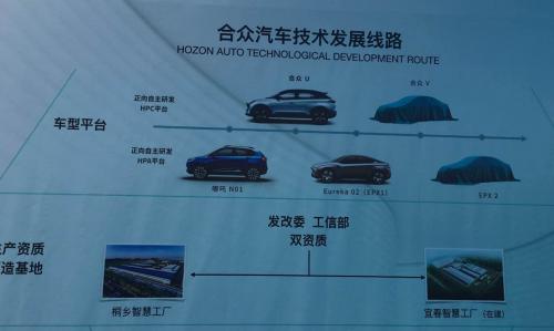 合众汽车拥有两大整车平台——HPC和HPA平台。其中,HPC平台将主要生产合众U等车型,HPA平台生产哪吒N01和代号EPX系列等车型。目前,哪吒N01已在桐乡智慧工厂生产。而宜春工厂建成后,将投产合众U等在内的HPC平台的新能源车型。现如今,合众汽车第二工厂将动工建设,标志着合众企业研发制造体系的进一步加强。