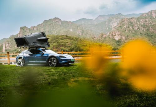 本次试驾活动特地选择了青龙峡多布营地为午餐点,此时Taycan Cross Turismo的猎装车优势就体现的淋漓尽致,超大的后备箱可以装载很多野炊露营的设备,经过改装后的车顶帐篷也发挥了很大功效。