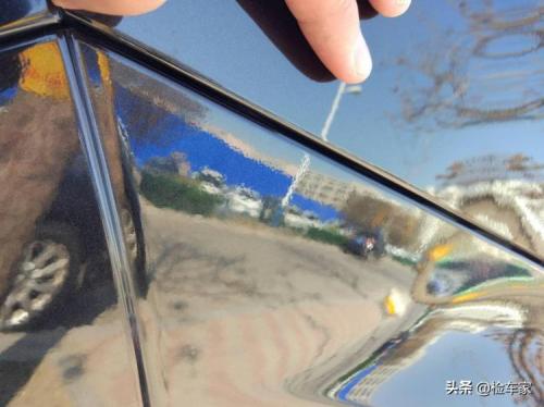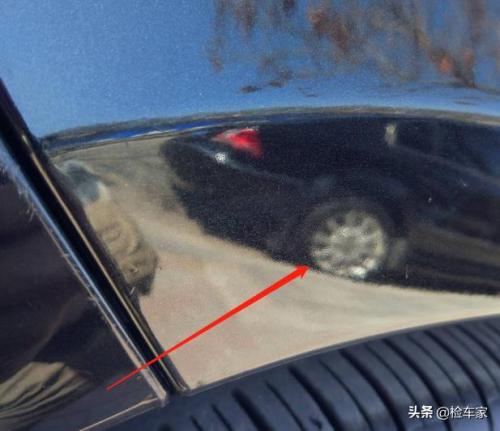 但是仔细观察的话还是能分辨出来漆面是否有修复痕迹,比如这个后保险杠,很明显就能看出来有二次喷漆后产生的磨砂纹路。
