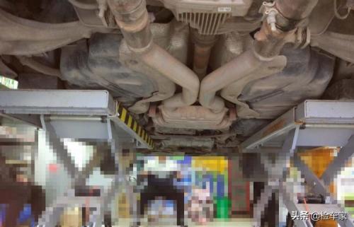 回到合作修理厂,最后进行底盘检测,可以发现这辆SRT的底盘上还是比较规整的,没有大面积拖底和漏油的情况。