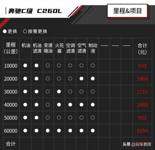价格方面,奔驰C260L小保费用为933起,大保费用为2460元起,而6万公里的大保金额高达6194元,这样算下来三年6次保养总费用是14697元。