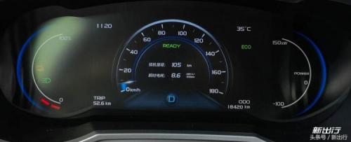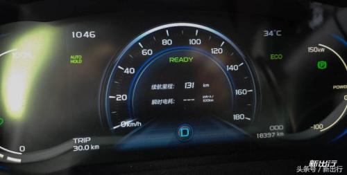 实际行驶30km,表显剩余131km,相加为161km,可见续航真实度很高当行驶52.6km后,表显续航至105km时,仪表盘左侧电量环变为两格,同时由灰色变为红色,电表灯立即点亮,并且仪表盘会提示驾驶员电量低请及时充电。