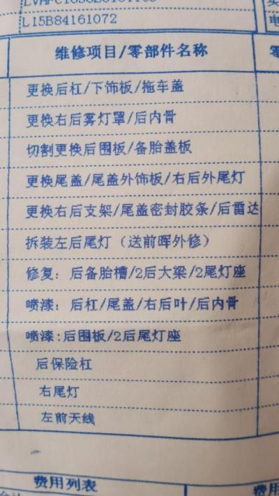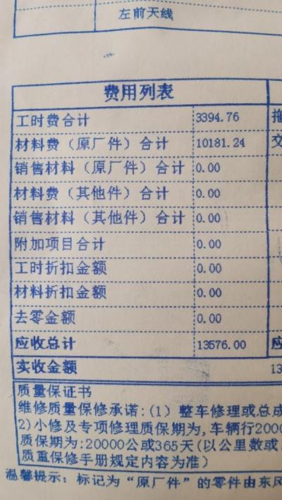 第二张图是维修费用列表,包括大家质疑的工时费(单单是工时费就花了3400),其他的都是原厂材料费用。