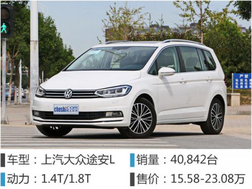 入选理由:同级别广汽丰田逸致和东风本田杰德销量都不太好,从侧面反映了家用MPV市场还未成为主流,途安L凭借“神车”的品牌号召力继续保持稳定的销量。