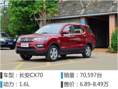 一直立足于商用车领域的长安商用,于今年四月推出了首款乘用车中型SUV-CX70。采用7座设计,座椅布局为2+3+2。长宽高分别为4680*1800*1750mm,轴距为2780mm。搭配1.6L发动机与5速手动变速器的动力总成。CX70-11月单月销量为10,725台,上市后累计销量为70,597台,平均月销10,085台。