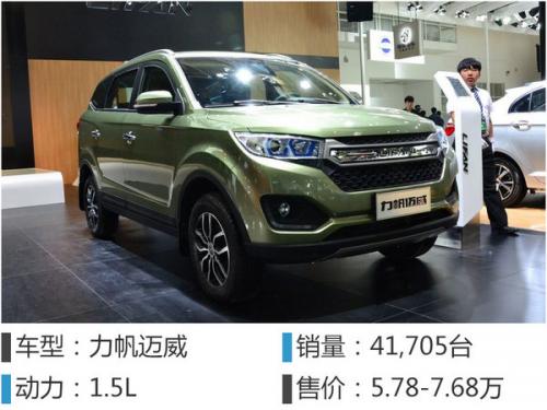 力帆在摩托车界的名声可谓如雷贯耳,但在汽车领域却是十足的“后来者”。力帆迈威是今年五月份推出的紧凑级SUV,累计销量达到了41,705台,平均月销6,950台,其中11月单月销量为9,108台。迈威的长宽高分别为4440*1760*1730mm,轴距为2720mm,座椅布局为2+3+2。动力总成搭配的是1.5L发动机和5速手动变速器/4速自动变速器。