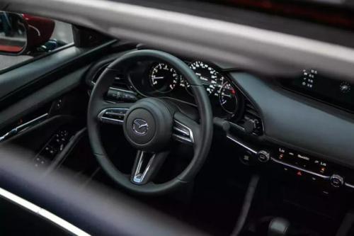 马自达为了让驾驶员能有更好的驾驶状态,在坐姿座椅和中控台布局上都下了不少功夫。你能用手摸到酷似宝马丁字裤的超性感方向盘,还有大量软质材料和皮革包裹的驾驶舱,马自达把那些硬塑料材质都放在了看不见的“阴影”之中。