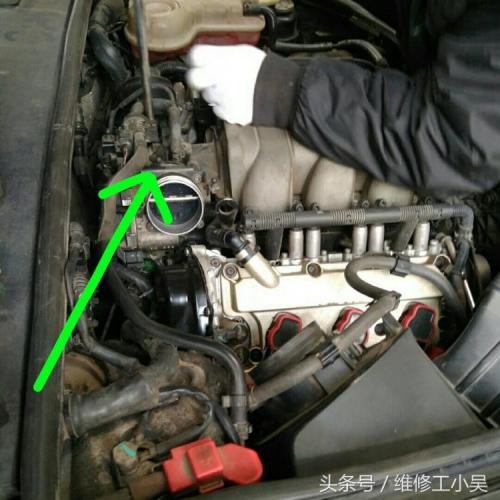 由此可以判断,发动机故障的主要原因就是废气阀或者说是曲轴箱通风控制阀有问题!上次大修时候,汽修师傅就建议车主更换,车主没更换,这次车主就有点后悔了!这次就必须更换了!下图汽修师傅正在拆卸进气歧管!
