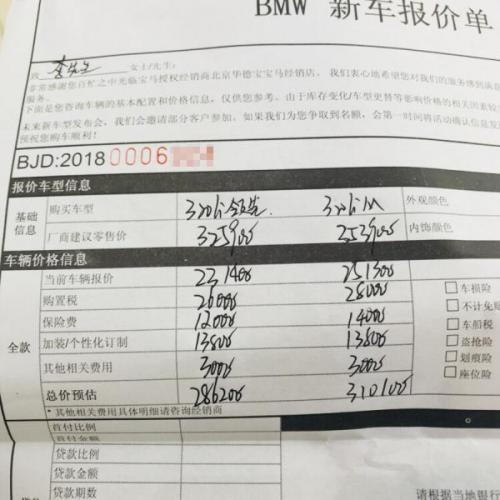 这不,今天又有朋友晒出了320LI领先版和320LIM的4S店实际报价单,供大家参考。