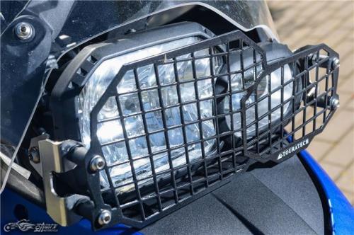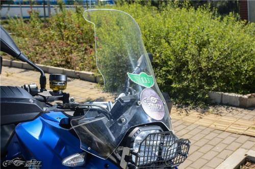 作为一款拉力车加装一款网状灯罩,作用可能不是很大,但大家都加装这个车主也只好随波逐流了,斌子觉得它的装饰性胜过实用性,真要说到实用,当天不少宝马拉力车车主加装的都是透明塑料罩,摩旅时可以有效防止昆虫粘在车灯上,方便清洗车辆,相比之下网状护罩就没这么实用了。