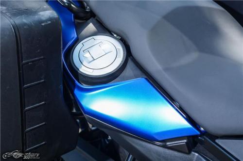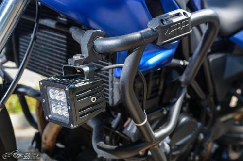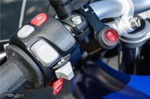 作为一款拉力车当然要有ABS开关了,在行驶艰难路段时关闭ABS防抱死系统是至关重要的,而且右侧红色开关是车主加装的射灯,夜晚骑行更加安全,而且安装在护杠上的射灯一点都不碍事,反而更加美观。