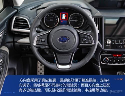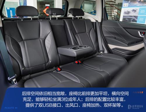 森林人的内饰采用经典的T型布局,左右对称的设计让强迫症患者感到很舒适,车厢的配置该有的一样都不少,例如真皮多功能方向盘带4向调节、主/副驾座椅电动调节、全车座椅加热功能、双区自动空调+后排出风口、后排隐私玻璃等,为家用创造舒适便利的驾乘环境。