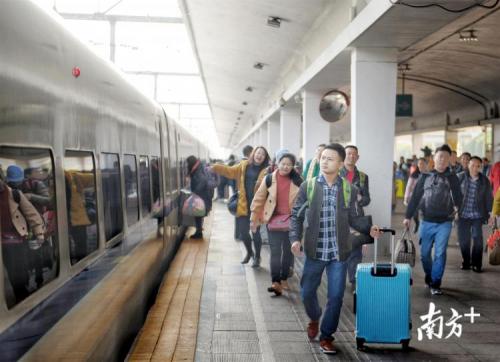 2月9日(大年初五),广铁迎来节后返程客流高峰,广东地区各大火车站到达客流超过75万人,同比增长20%,其中广州南站到达31万人,广州站到达10万人,广州东站到达6万人,深圳北站到达21万人,深圳站到达7万人。广铁结合客流预计情况动态调整运力,明天加开列车297列,其中动车189列,普速108列,预计发送旅客170万人。