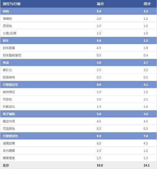 操控与行驶部分AH100得分: