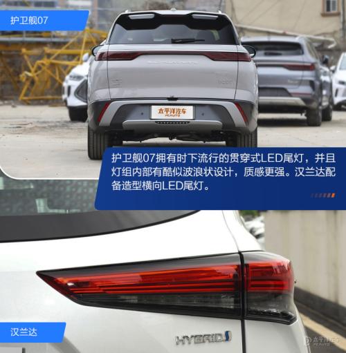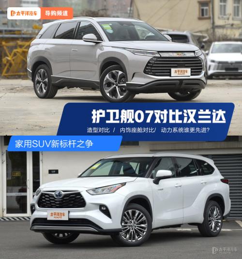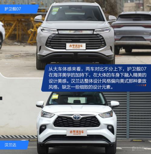 【太平洋汽车导购频道】以往提起汉兰达,大家都标榜它为“中型SUV标杆车型”;不过,如今的国内汽车市场发展迅速,中国品牌全面崛起,各种优秀的中型SUV产品更是百花齐放,汉兰达放在今天已经不是一个必选项了,甚至会被后来者完成超越。今天要说的后来者,就是来自比亚迪海洋网的护卫舰07(询底价|查参配),其拥有比亚迪DM-i超级混动技术、DiLink系统、DiPilot系统等一系列亮点,还有海洋美学设计加持,通过外观设计、内饰座舱、乘坐空间和动力系统这几个维度进行对比,你会发现护卫舰07是有潜力推倒汉兰达这个“前浪”。