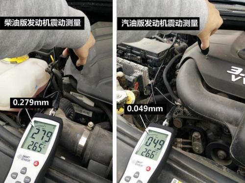 当然,车辆噪音都在我意料之中,柴油发动机由于活塞压缩行程较长而且转速不高,因此噪音上要比汽油版车型要大些,而差距也在2dB上下。然而,震动方面则让我感到意外,0.13mm的车内方向盘震动数据几乎可以忽略。这无疑扭转了我对“柴油车”固有“脏乱差”的偏见。