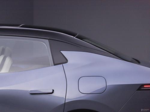 腰线在C柱进行快速地上扬与车顶相融合,这一设计也是在致敬领克第一代设计语言中的反向鲨鱼鳍设计。当然,这一设计不仅是让整个侧面更加动感凌厉,更重要的是只能加后排的头部空间。