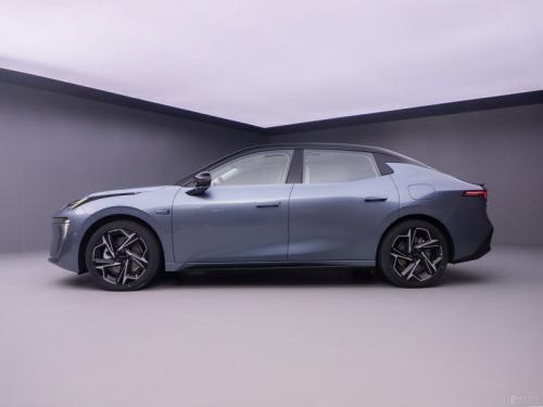 除此之外,前脸设计里面最亮眼的当属头灯造型,官方将其称之为“破晓之光”,这一设计也和08EM-P车型上面的造型保持一致。使得整车从正面来看的话延伸感非常强。
