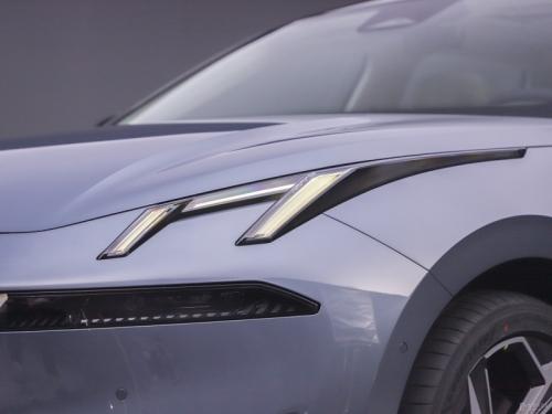 车头设计依然采用了领克的家族式设计语言,辨识度非常高。在机盖下方还有一条贯穿式的灯带,26颗LED光源从内向外,由小及大呈放射性排列,使得车头造型简洁的同时也带了不少未来感。