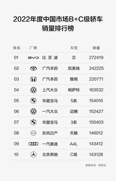 今年年初,比亚迪陆续推出了冠军版车型,其中汉DM-i(参数|询价)冠军版进一步将起步售价降至18.98万元,显然是瞄准了20万级家轿市场,截至目前的销量来看,汉家族持续领跑B+C级轿车销量榜,确实对传统合资品牌形成了不小的冲击。