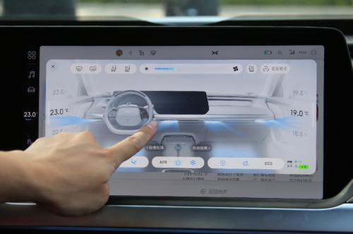 除了外观上够科幻外,小鹏P7的中控也足够简洁,10.25英寸的液晶仪表和14.97英寸的中控大屏采用双联屏设计,物理按键几乎消失。除了常用的空调调节以外,驾驶模式甚至后视镜调节都需要在中控屏中操作,多级菜单的分布让第一次接触的人有些摸不到头脑,在菜单逻辑上还可以更加优化。