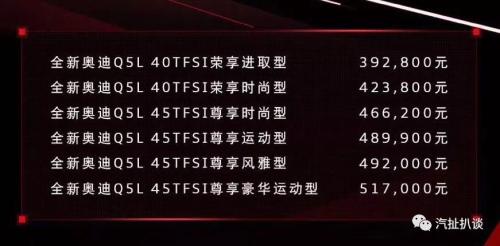 最后再聊一下消费者最关心的价格问题,全新奥迪Q5L的起售价39.28万元相比全新宝马X3的39.98万元低了7000元,可以换来更大的空间、更好的动力,但在配置上宝马X3要略胜一筹。而全新奥迪Q5L的45TFSI高功率车型起售价为46.62万元,全新宝马X3的30i高功率车型的起售价已经达到了49.68万元,奥迪Q5L尽显价格优势。