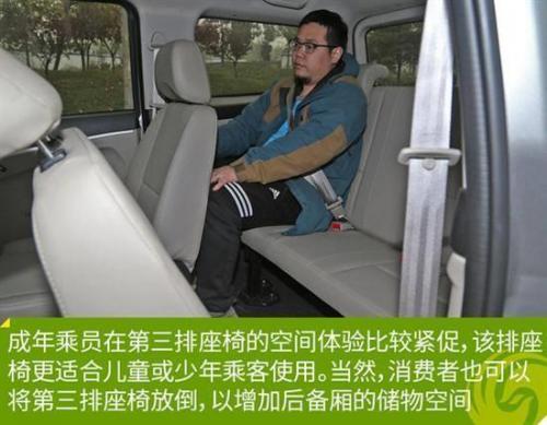 新帅客采用2 2 3的座椅布局,身高175厘米的体验者坐在驾驶席或第二排座椅均可获得宽裕的空间体验。相对而言,成年乘员在第三排座椅的空间体验比较紧促,该排座椅更适合儿童或少年乘客使用。当然,消费者也可以将第三排座椅放倒,以增加后备厢的储物空间。