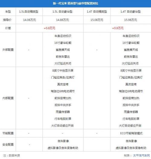 1.5L自动精英型推荐指数:★★★★★ / 1.4T自动精英型推荐指数:★★