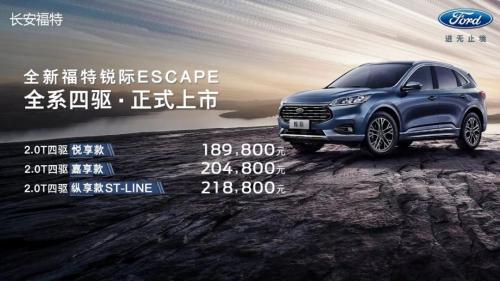 中国汽车新闻网讯12月19日,长安福特全新中型SUV——锐际Escape正式上市,3款车型,售价18.98-21.88万元。自今年4月在2019福特中国2.0战略发布会上完成国内首发以来,全新福特锐际Escape就备受行业关注。