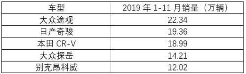 虽然20万级的中型SUV市场仍有着不错的市场潜力,但从前11个月的销量排名来看,排名前几位的20万级合资SUV包括途观、奇骏、CR-V、探岳及昂科威的差距其实不算太明显。这也从侧面说明,这一细分领域的竞争同样是相当激烈的。