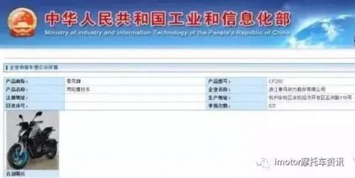 最新消息,有车友在工业和信息化部的网站上,看到了春风企业申请的新车型,代号CF250。
