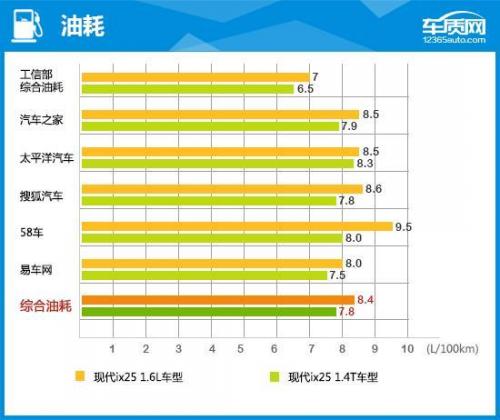车质网综合工信部及各汽车垂直网站的油耗统计数据,得出北京现代ix25车型的实际油耗均略高于工信部油耗。从最终结果上看,1.4T双离合车型的燃油经济性要略强于1.6L自动挡车型,且在动力储备方面显然前者的优势更为明显。在新车调查中,油耗在8-10升的车主占比约为55.7%。