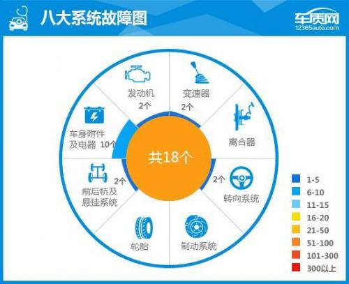 截至2018年11月30日,车质网共收到2017款北京现代ix25投诉17宗,投诉销量比为万分之1.8,远低于2017年国内乘用车市场万分之14.1的行业平均值。其中,涉及质量类问题的投诉有12宗,共包含18个故障点。在这些投诉中,涉及车身附件及电器的占比最大,通过消费者反馈,问题主要集中在异响以及车身生锈问题。而在质量可靠性调查中,给出“不满意”的车主仅占比8.9%。