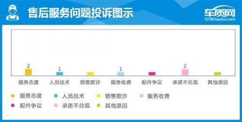 截至2018年11月30日,车质网共收到服务类问题投诉5宗,涉及投诉点6个。其中问题主要集中在车辆出现问题时,4S店内技术人员不能检查出原因以及服务态度问题。
