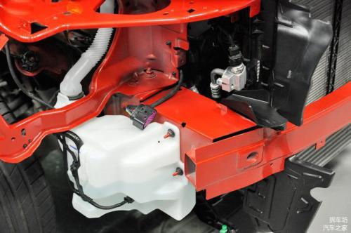 在前排乘客脚下,我们能看到中部设置的两道纵向加强梁,该结构同样是为了提高乘员舱的强度,以便在碰撞中最大限度降低乘员舱变形程度,保障乘员生存空间。